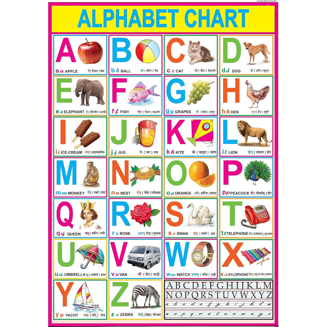 - PRODUCT DETAILS:-Â Material: Plastic (Double Side LAMINATED) || Color: Multicolor || Size – 70x100cm || Age Group:- 1 – 5 years || Language- Englis and Hindi
