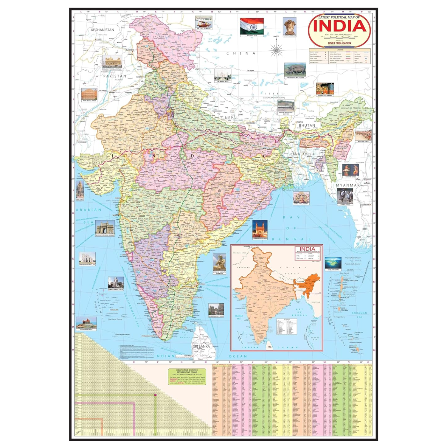 PRODUCT DETAILS:- Latest UPDATED India Political Map, Material: LAMINATED BOTH SIDES || Extra Large Size (70×100 cm) || DOUBLE SIDED TAPE || TEAR, WATER & DUST RESISTANT