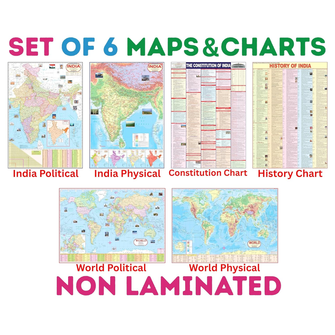 PACK OF 8 MAPS & CHARTS INCLUDE:-Â India Political Map, India Physical Map, World Political Map, World Physical Map, India Constitution, Indian History, Geographical Terms & Indian Economy chart.