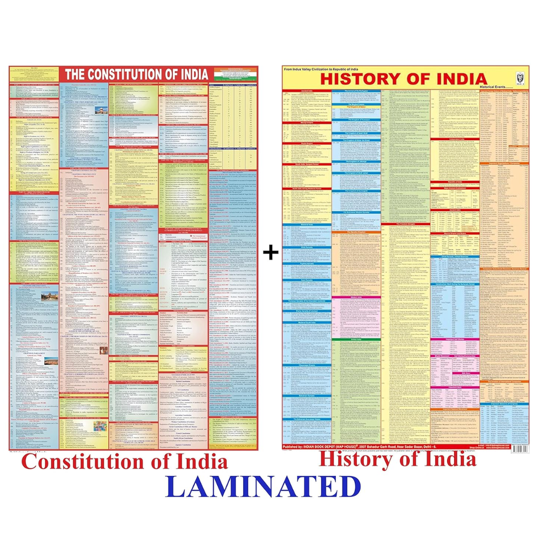 The Constitution of India and History of India chart | LAMINATED | Combo of 2 Charts